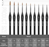 - DETAIL PAINT BRUSH SET: 10pcs miniature brushes (SIZE:5/0,3/0,2/0,0,1,2,3,4,6,8) ensure that you always have just the right paint brush for the job. This set of detailing brushes offers the perfect small paint brush for each phase of all your artistic painting projects.