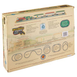 Spirit Of Christmas Ready To Run Electric Train Set - N Scale. Good things come in small packages. This is certainly true when it comes to the Spirit of Christmas N scale set. Perfect for under-the-tree in a small space and festively decorated for a very Merry Christmas. This ready-to-run set features: 0-6-0 steam locomotive and tender, old-time combine car, two old-time coach cars, 34" x 24" oval of nickel silver E-Track including 11 pieces curved track, 4 pieces straight track, and 1 curved plug-in terminal rerailer, Power pack and speed controller.