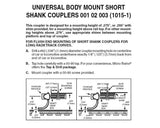 Assembled RDA body mount couplers: 2 pr. (1015) short shank with variable mounting height .293" with shim or .279" without shim. (1015-1)