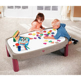 Enjoy sloping roadway action when you buy the Step2 Deluxe Canyon Road Train and Track Table. Perfect for your children's train set and die-cast cars, this canyon-themed Step2 deluxe train table has a built-in multi-level track for hours of imaginative play. With molded-in tracks and permanent bridges, you won't have to bother with constantly repairing or resetting this colorful course of looping roads and shadowy valleys. As an added bonus, the included cover transforms the Step2 train table into the perfect craft center for family activities. With a low design for ease of access and handy storage for cars and trains, this Step2 deluxe train table is sure to become a family favorite. Bring home the Step2 Deluxe Canyon Road Train and Track Table today.