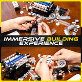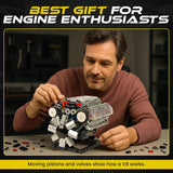 V8 Engine Model Kit - DIY Functional Mini V8 Engine with Visible Combustion Mechanism, 535-Piece STEM Engineering Kit for Ages 14 and Up
