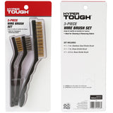 The Hyper Tough 3 Piece Multi Use Wire Brush Set includes a 7 in Brass bristle brush , a 7 in Stainless steel bristle brush and an 8-1/2 in Brass bristle brush. The Hyper Tough 3 Piece Multi Use Wire Brush Set are used on softer surfaces or when it is necessary to clean a harder surface without marring it and in potentially flammable environments where non-sparking tools are required. The Hyper Tough Wire Brush Set is used to remove flaking paint, rust, scratches, dirt and small imperfections. The Hyper Tough 3 Piece Multi Use Wire Brush Set features a contoured handle for comfort and control for Utility Cleaning.