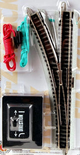 Snap-Fit E-Z TRACK® REMOTE TURNOUT - LEFT (1/card) - NICKEL SILVER Rail With Grey Roadbed - N Scale. Bachmann's exclusive E-Z Track system makes set-up quick, easy and fun. E-Z Track is designed to Snap Together and Stay Together on Floors, Tables and Carpets. This product features Nickel Silver Rail with Gray Roadbed. This is the basic turnout of the E-Z Track® system with a turnout radius matching 11.25” Radius Curved Track. If you have enough room, you may consider purchasing larger E-Z Track® turnouts to allow for smoother transitions between tracks during switching operations, and to accommodate locomotives and rolling stock with longer wheel bases. Note: For Powered Operation All analog turnouts (non-DCC) require 16V AC or DC accessory power supply.